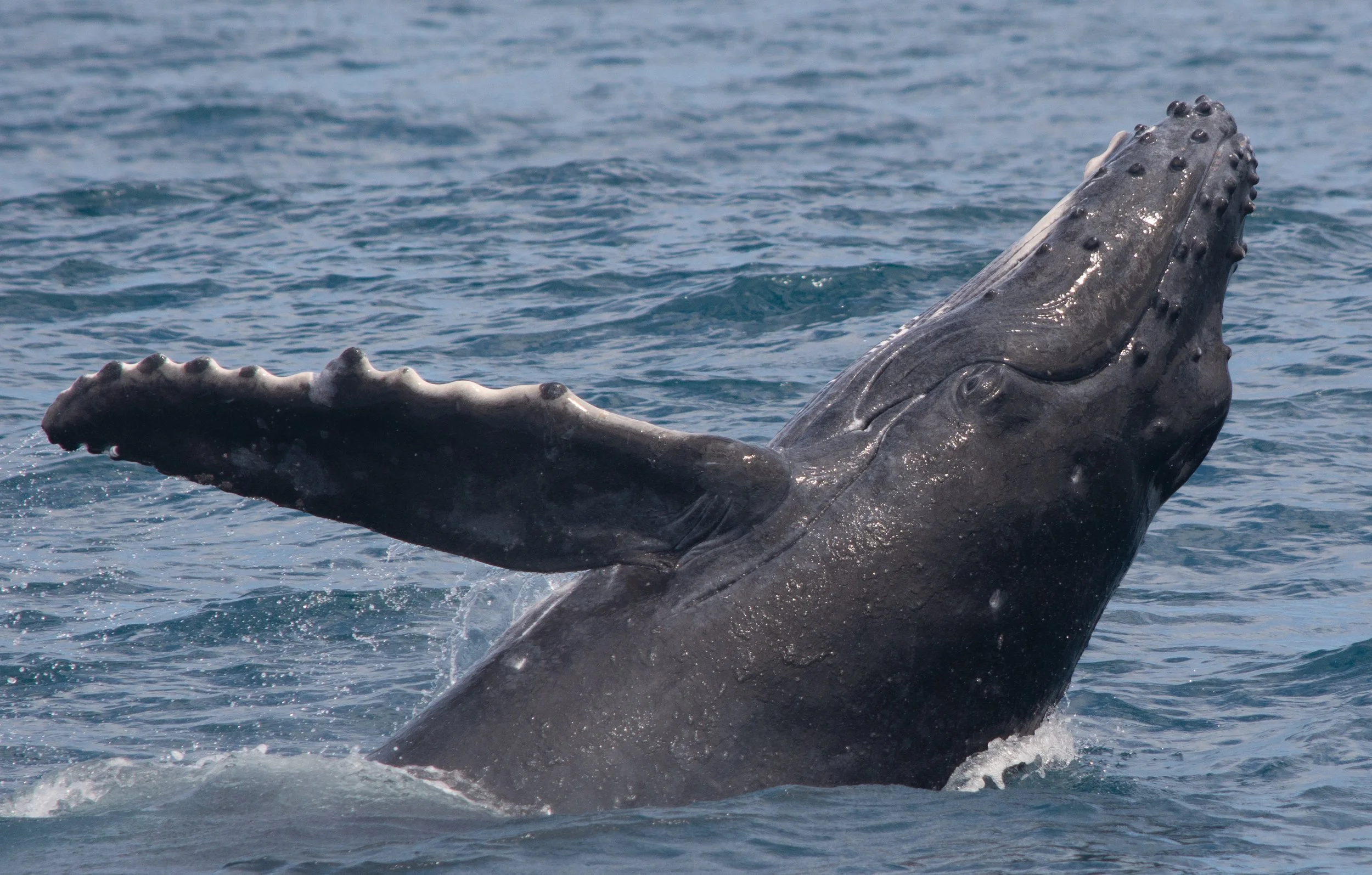 Humpback whales breaching and feeding